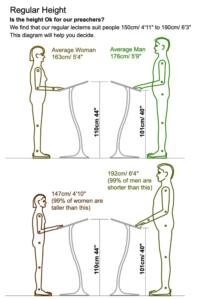 The Arc3 podium has a large 70cm (28”) wide top. Plenty of room for a large book of notes and a bible to sit side by side. If you need the top to be smaller, we can make a smaller 60cm/ 24” wide top for the same price. Please e-mail us.