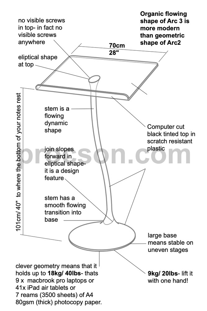 Organic, flowing shapeThe Arc3 (both in silver and black finishes) is the best pulpit we make.